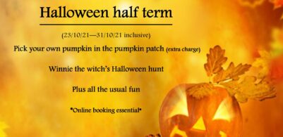 Here on the farm we are going pumpkin mad again during the October half term holiday (23/10/21 – 31/10/21) …explore the patch and have fun choosing your own pumpkin. The patch will be open from 10.45am-11.30am, 1.30pm-2.15pm and 3.15pm-4.00pm. Whilst … [Read more...] about Halloween Half Term Fun